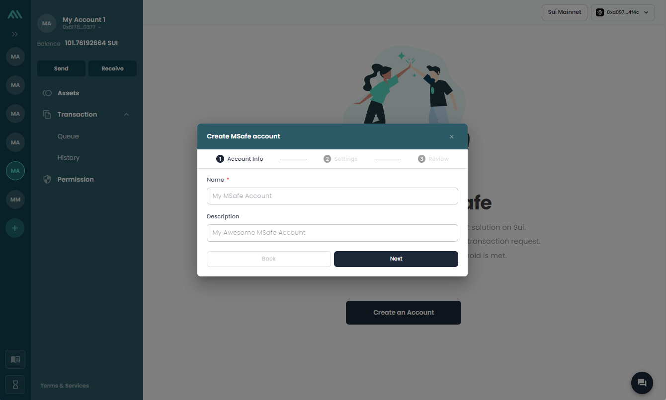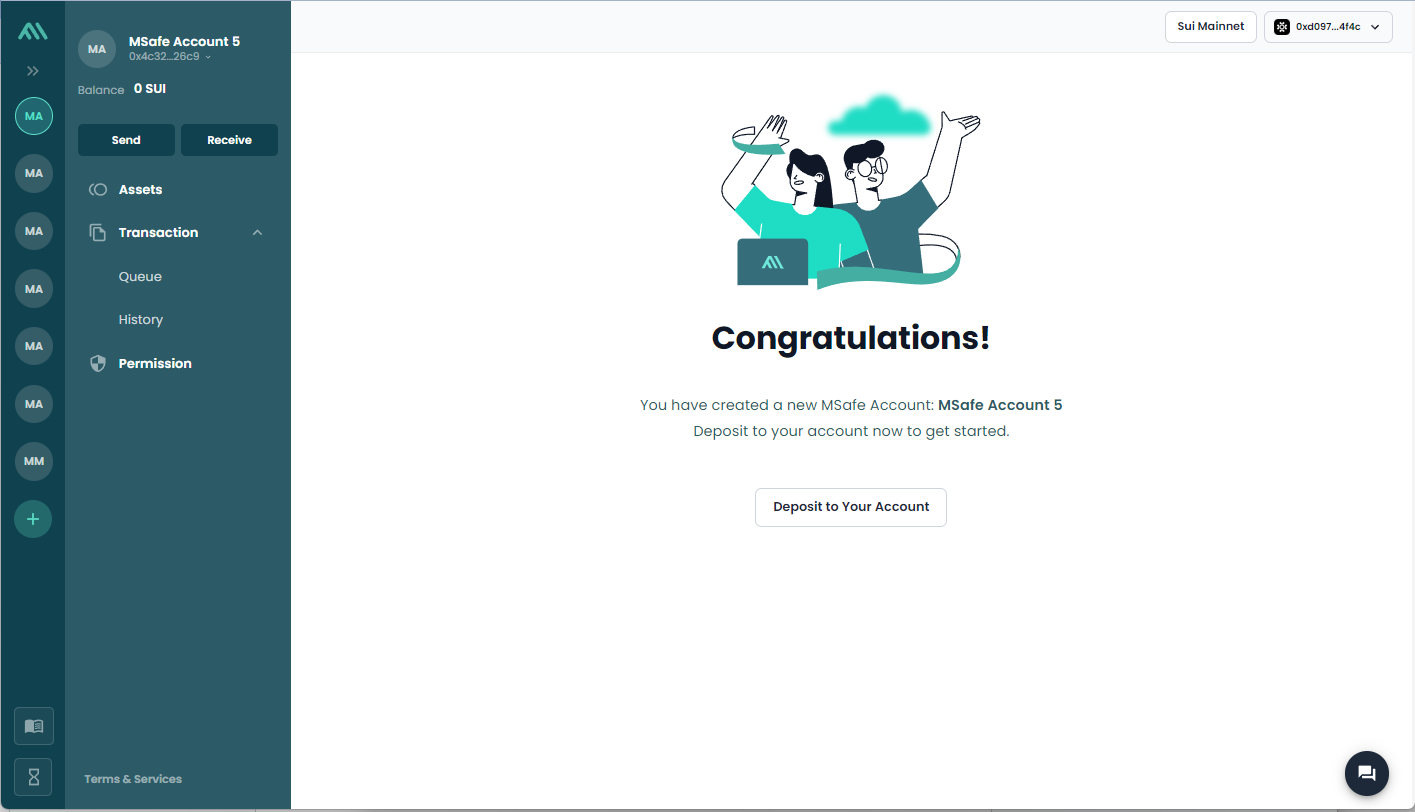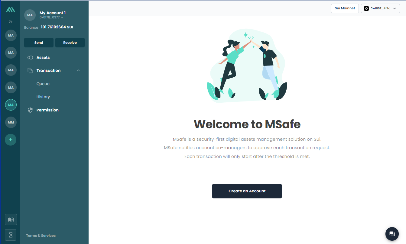 Once you complete Connect Wallet, you will come to the MSafe Welcome page.